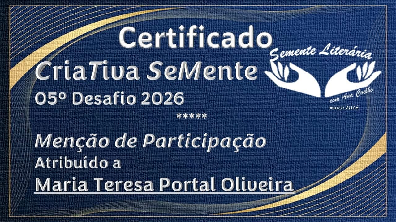 A Terra pensa no ontem e no amanhã [poesia] Menção de Participação no 1º Desafio de Cria Tiva SeMente. SeMente Literária. Janeiro 2026.
