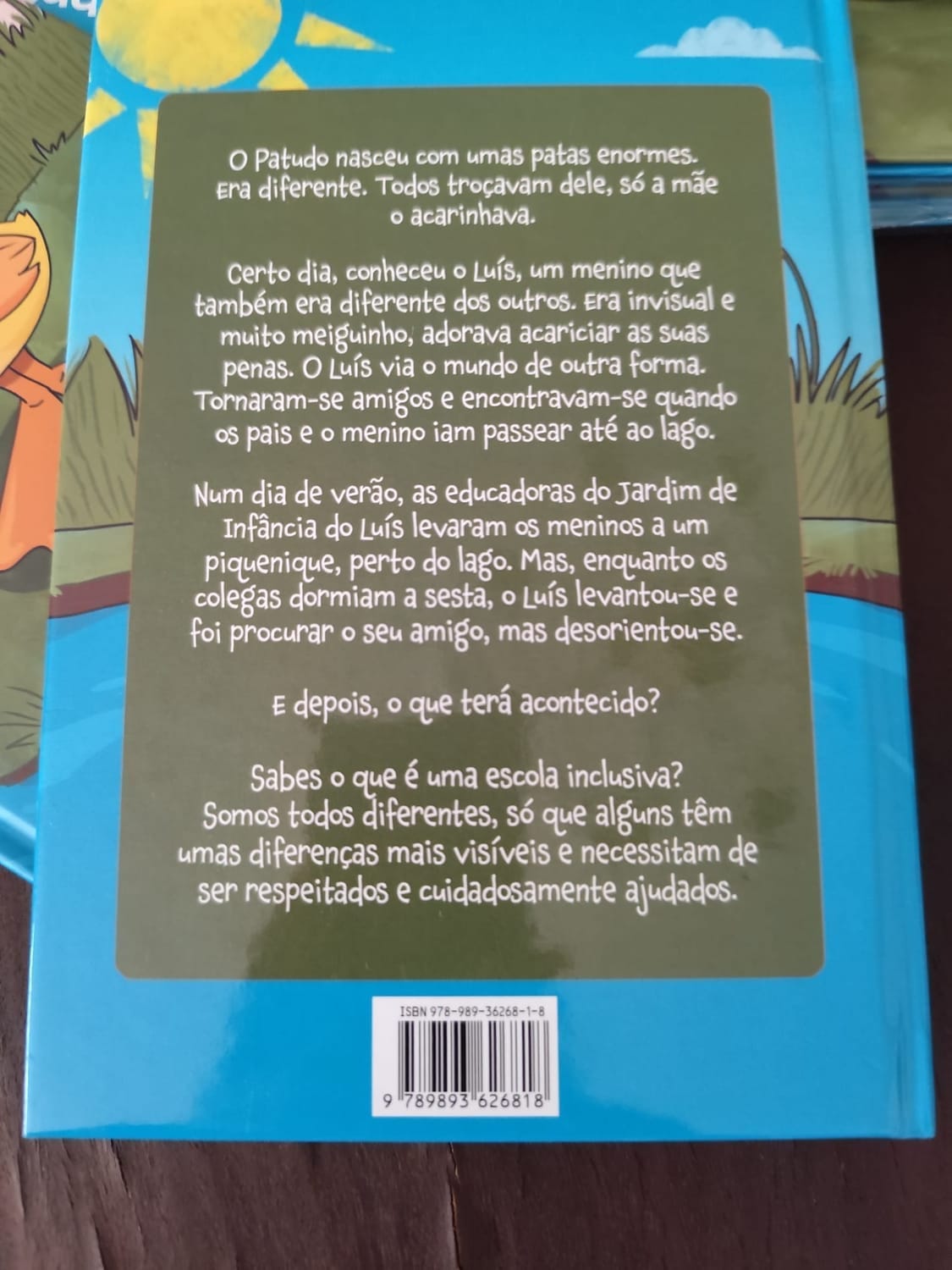 Certo dia, conheceu o Luís, um menino que também era diferente dos outros. Era invisual e muito meiguinho, adorava acariciar as suas penas. O Luís via o mundo de outra forma. Tornaram-se amigos e encontravam-se quando os pais e o menino iam passar até ao lago.